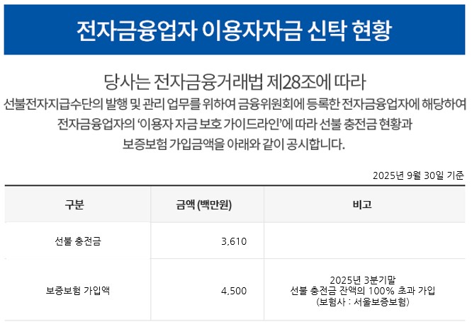 전자금융업자 이용자자금 신탁 현황 (25년 9월말 기준)